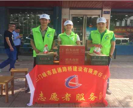 2016年6月7日烈日炎炎,三門峽市昌通路橋建設(shè)有限責(zé)任公司四名志愿者,在高考頭一天來到三門峽市一高考點(diǎn)為考生、考生家長(zhǎng)及嘔心瀝血的執(zhí)勤人員送去礦泉水,獻(xiàn)上一份愛心。
