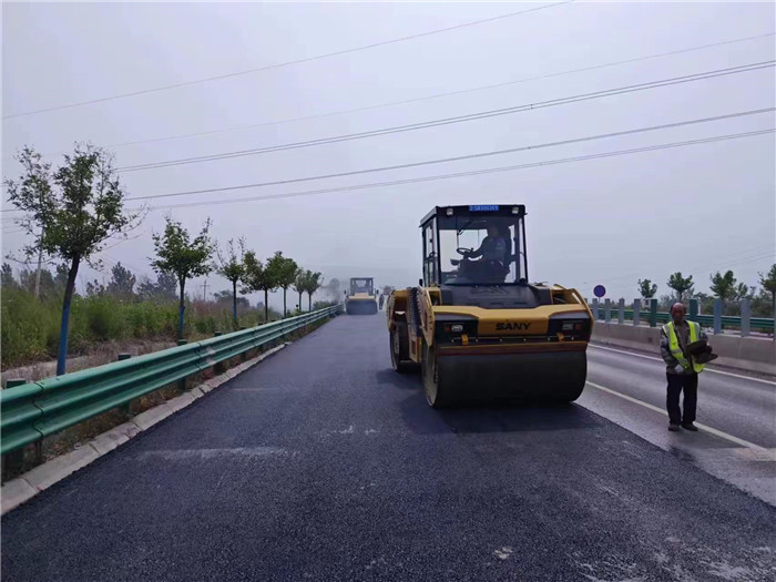 二工區(qū)上行青龍澗橋西攤鋪瀝青混凝土碾壓