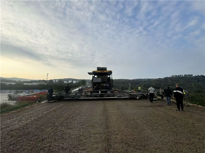 三門峽西收費(fèi)站3號(hào)車道第二層墊層澆筑中