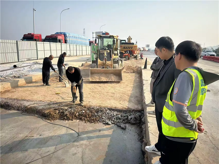 9月10日,公路事業(yè)發(fā)展中心總工程師趙兵、養(yǎng)護(hù)科科長(zhǎng)張紅雁、副科長(zhǎng)趙志偉及209項(xiàng)目公司總經(jīng)理白萬(wàn)民、副總經(jīng)理姚云生一行至S244線G209跨線橋改造項(xiàng)目視察工作,聽取負(fù)責(zé)人匯報(bào)施工進(jìn)展情況、了解工期節(jié)點(diǎn),現(xiàn)場(chǎng)協(xié)商G209項(xiàng)目與S244改造項(xiàng)目交叉分項(xiàng)工程計(jì)劃部署。